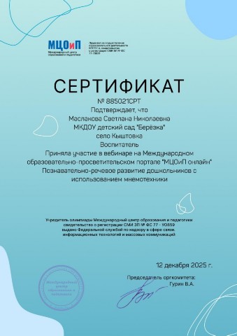 Сертификат участника вебинара