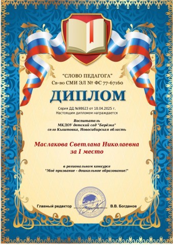 Диплом 1 место в конкурсе "Мое призвание - дошкольное образование" |