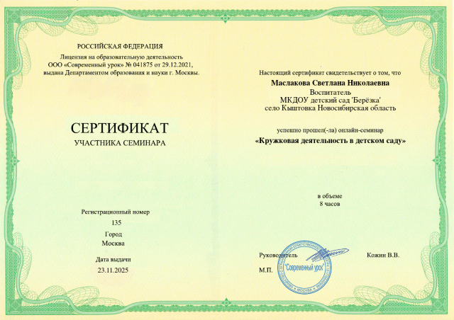 Сертификат участника семинара