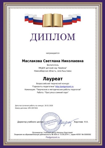 Диплом лауриата всероссийского творческого конкурса "Горизонты педагогики" |