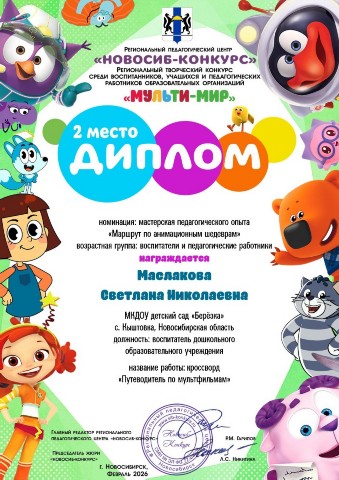 Диплом регионального конкурса "Мульти-мир" 2 место |